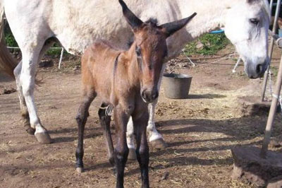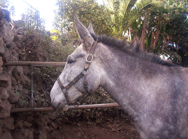 Estrella, unser Mulimädchen ist im Januar 2007 bei uns geboren, ein sog. "Weideunfall" auf kanarisch. Sie ist im Herdenverband aufgewachsen und geht jetzt auf Ausritte mit. Gute Reiter erleben einen Ausritt auf einem sehr trittsicheren Muli welches aber ab und an dem Vater Esel nachkommt und sehr eigenwillig sein kann.